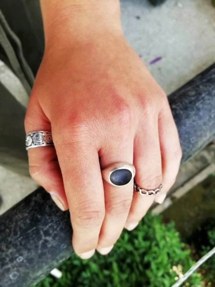 Inspired by the volcanic pebbles of Mavra Volia beach in Chios, this ring reflects the quiet force of material shaped over time. Clusters of rounded forms echo stones smoothed by the sea, held together in a structure that feels both raw and intentional.