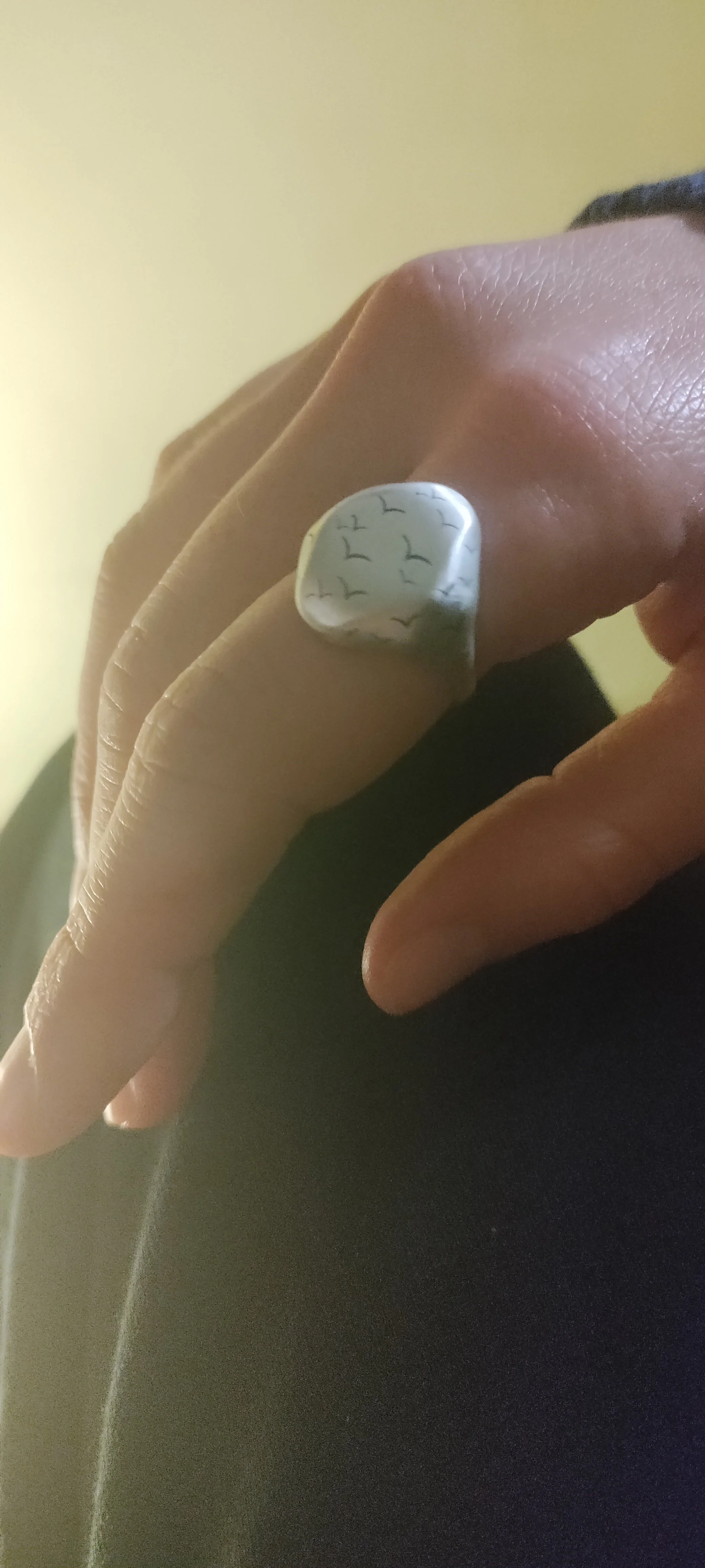 Hand-cast specifically for you in my Amsterdam studio. Ready to ship in 10–14 business days Weight: ~12g Sometimes a single piece of tangerine peel carries more character than the rest. Uneven, textured, and irregular, it holds the imprint of the fruit it once protected — a fragile skin shaped by nature and by the simple gesture of peeling. This ring captures that solitary fragment. Its surface echoes the porous texture of a tangerine rind, preserving the delicate patterns and imperfections that make each peel unique. A quiet tribute to the small details we often overlook — the textures left behind after a moment has passed, and the beauty hidden within the simplest forms.